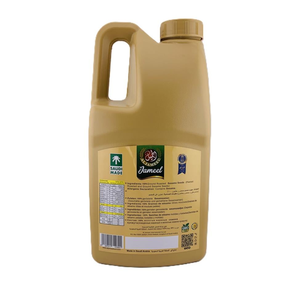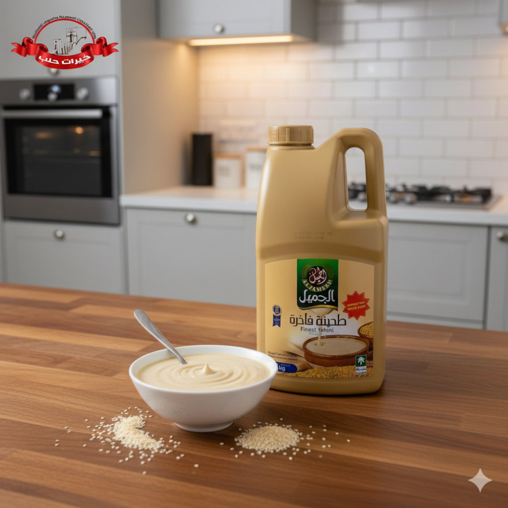 طحينة الجميل، مصنوعة من سمسم نقي 100٪، مناسبة للاستخدام في تحضير المأكولات والحلويات والصلصات. تتميز بقوامها الكريمي ومذاقها الغني الذي يضيف نكهة طبيعية للأطعمة.