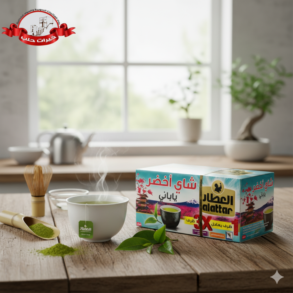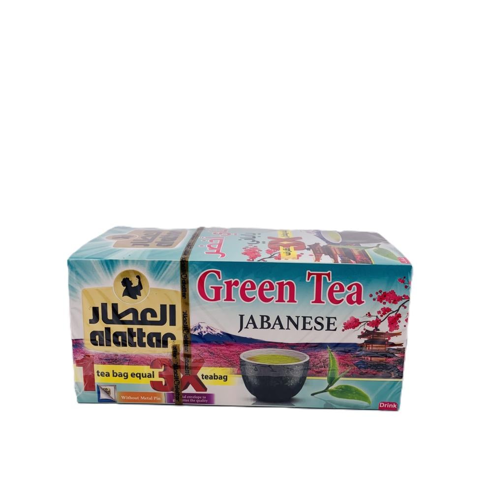 شاي أخضر ياباني من العطار، مصنوع من أوراق شاي طبيعية عالية الجودة. مناسب لتحضير مشروبات ساخنة منعشة وصحية، ويتميز بمذاقه الطبيعي والفوائد الغذائية المرتبطة بالشاي الأخضر.