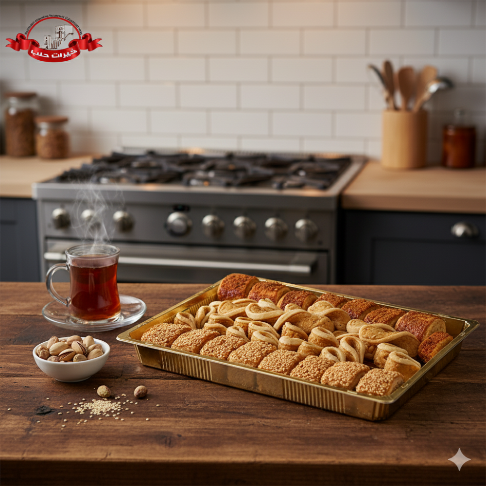حلا مغربي فاخر مشكل، يجمع بين مجموعة متنوعة من النكهات المغربية التقليدية والمكسرات الفاخرة، هش ولذيذ، مثالي لتقديمه مع القهوة أو الشاي، أو كتحلية مميزة في المناسبات الخاصة.