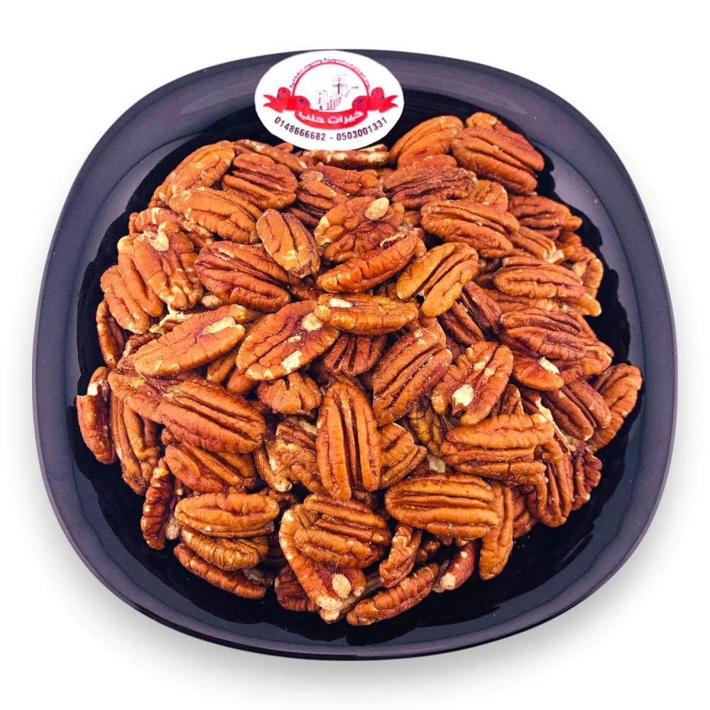 جوز بيكان طبيعي غير محمص، غني بالنكهة ومثالي للوجبات الخفيفة، الحلويات والمخبوزات. متوفر بوزن 250 أو 500 جم.