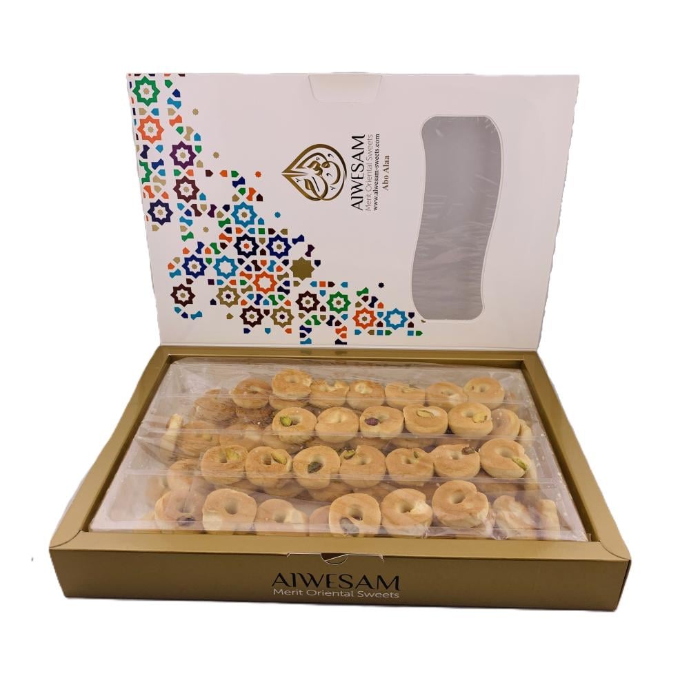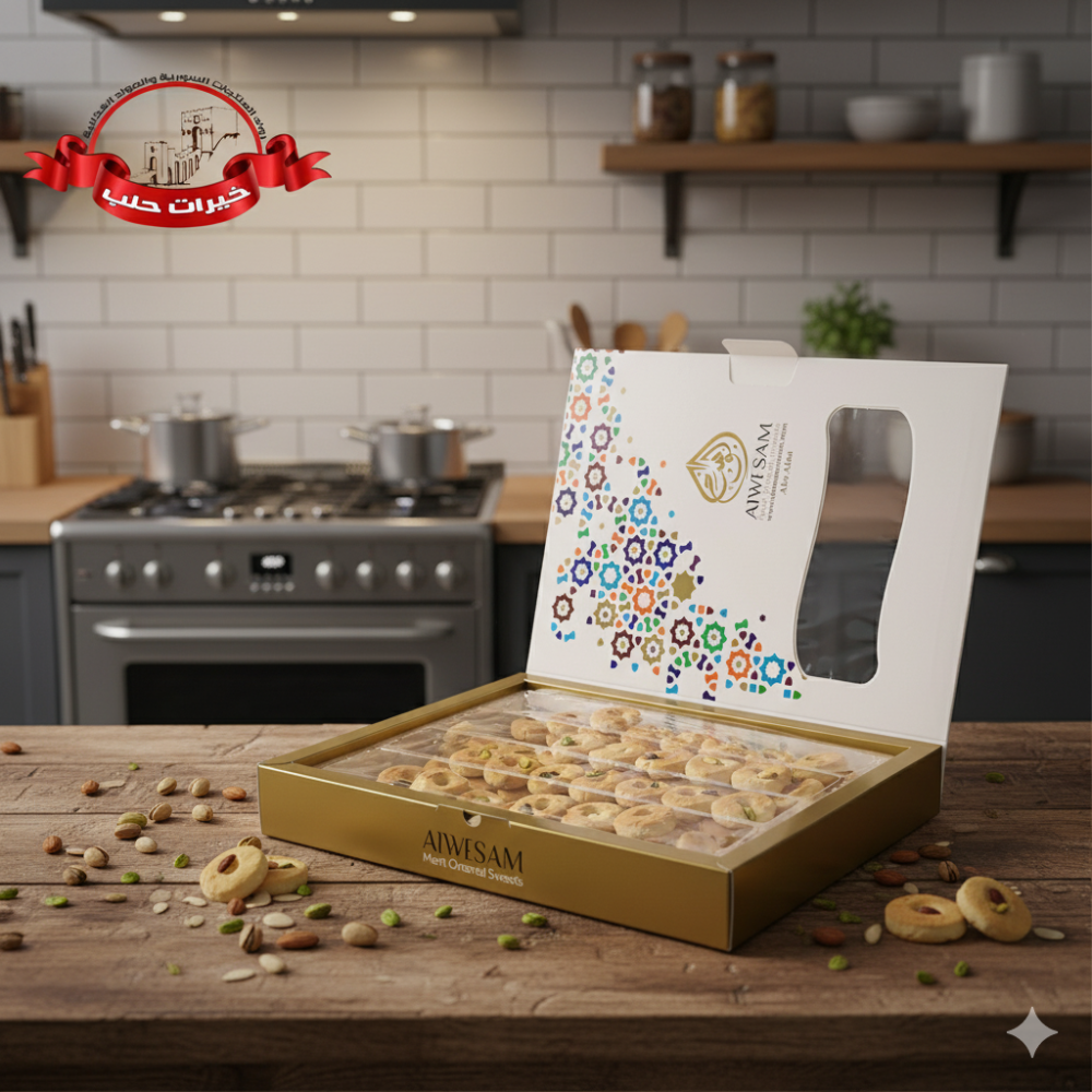 غرايبة الوسام بوزن 500 غرام، حلوى شرقية هشة وناعمة المذاق، تذوب في الفم وتجمع بين الطعم الأصيل والقوام المميز.