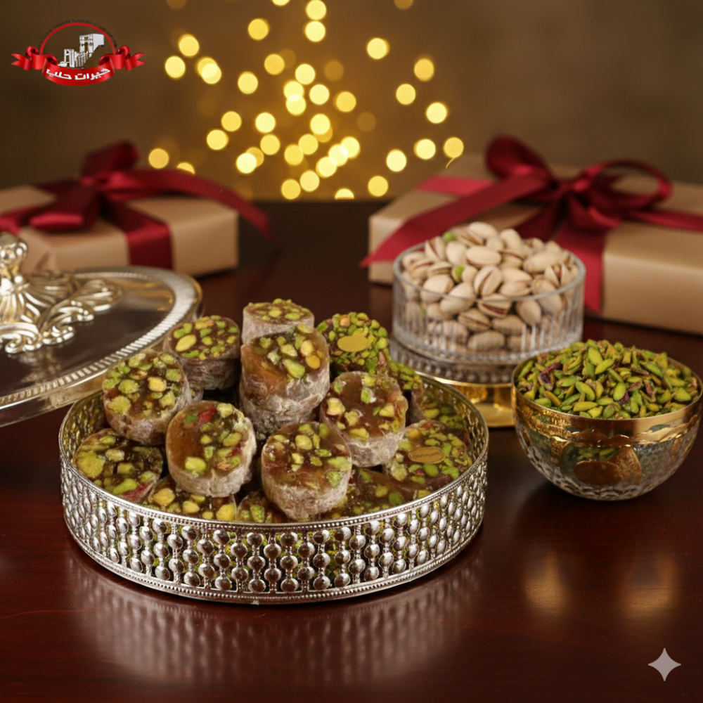 راحة الحلقوم الفاخرة، مضاف إليها الفستق الحلبي ونكهة المستكة المميزة، تقدم طعمًا غنيًا وقوامًا طريًا يجمع بين الحلاوة واللذة. مثالية للتحلية بعد الوجبات، للضيافة، أو لتقديمها مع القهوة والشاي.