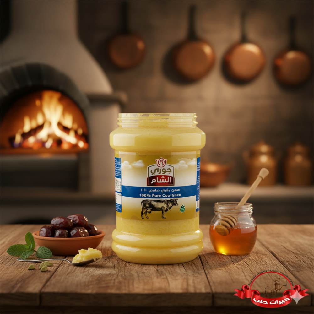 سمن بقري من جوري الشام، مناسب للطهي، القلي، وتحضير الأطباق الشرقية والغربية والمخبوزات.