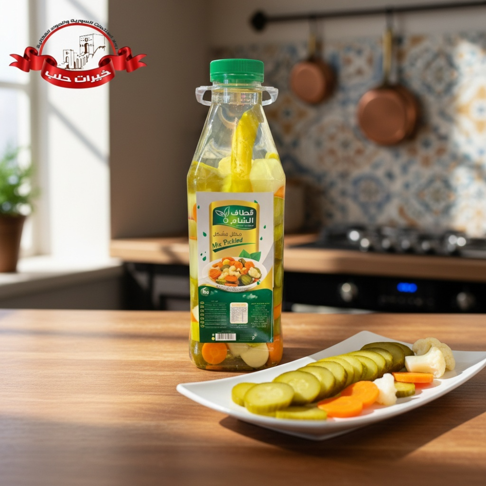 مخلل مشكل قطاف الشام بتشكيلة متنوعة من الخضار المقرمشة، بطعم متوازن ولذيذ يضفي نكهة مميزة على موائد الطعام والمقبلات الشرقية.