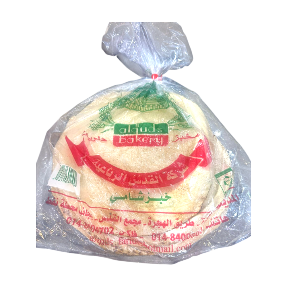 خبز شامي طازج من أفران القدس، هش وناعم، مثالي للسندويشات والمقبلات والوجبات اليومية.