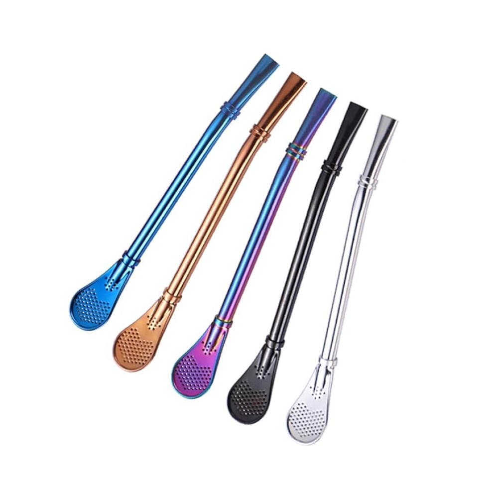 مصاصة متة متينة من الفولاذ المقاوم للصدأ، متوفرة بعدة ألوان، مثالية لتناول المتة بطريقة صحية ومستدامة.